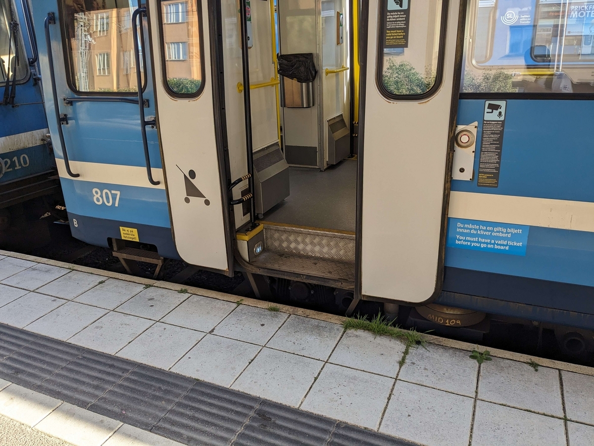 元々は何の変哲もない中間車だったUBp形は、2010年代のリニューアルによってバリアフリー化されている。低床部はドア開時ににょきっとステップが生えてきて隙間を出来るだけ小さくしている。ステップ動作のために、このドアだけ開扉が少し遅れる。